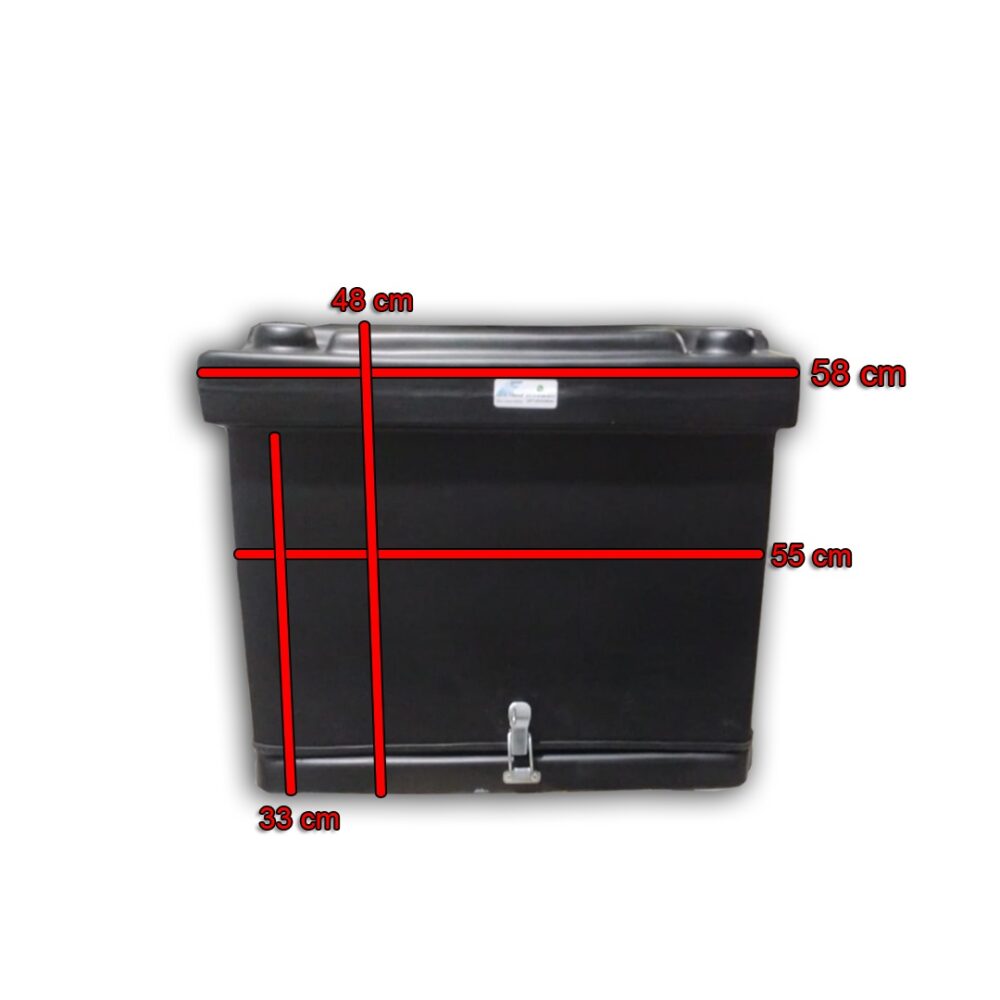 Suporta em torno de 90 Kg bem aconchegados ( Sem que a carga fique batendo dentro do baú )
